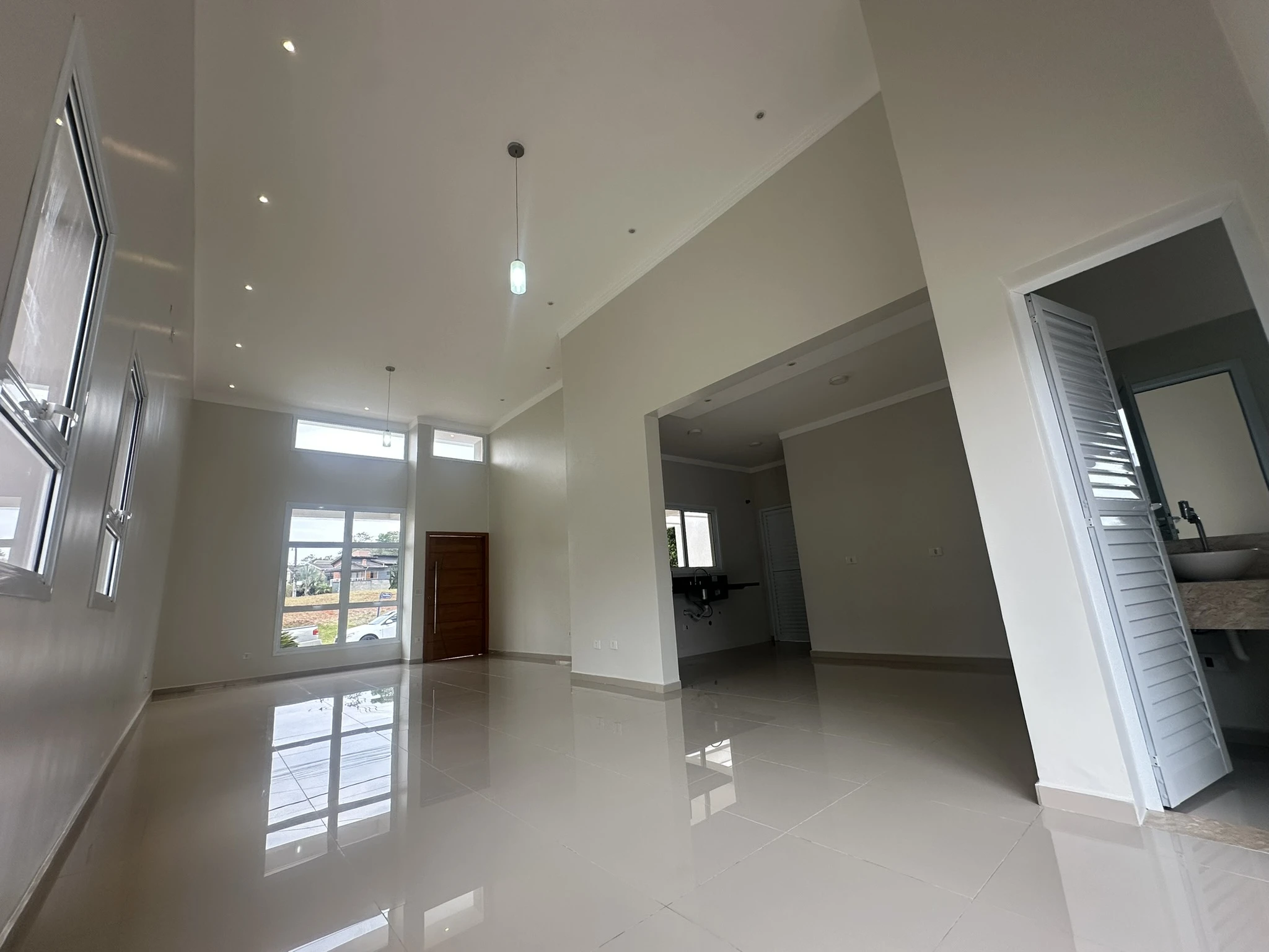 Uma casa térrea que impressiona logo na chegada, com design moderno e pé-direito duplo que valoriza a iluminação natural e traz ainda mais sofisticação aos ambientes.
