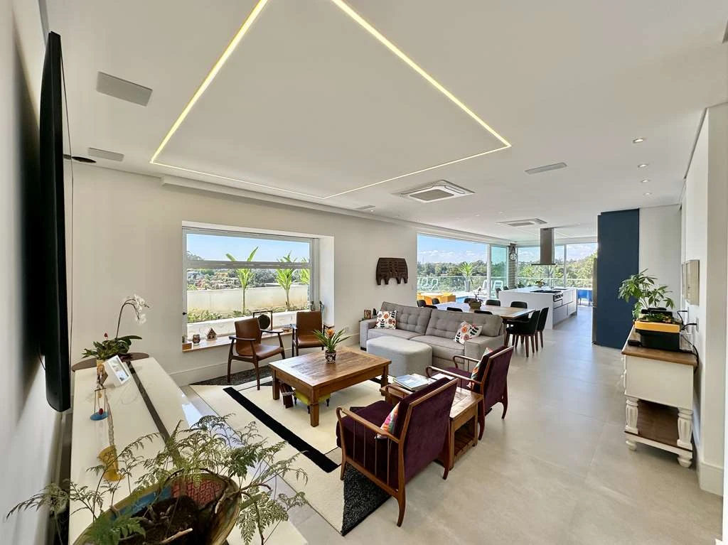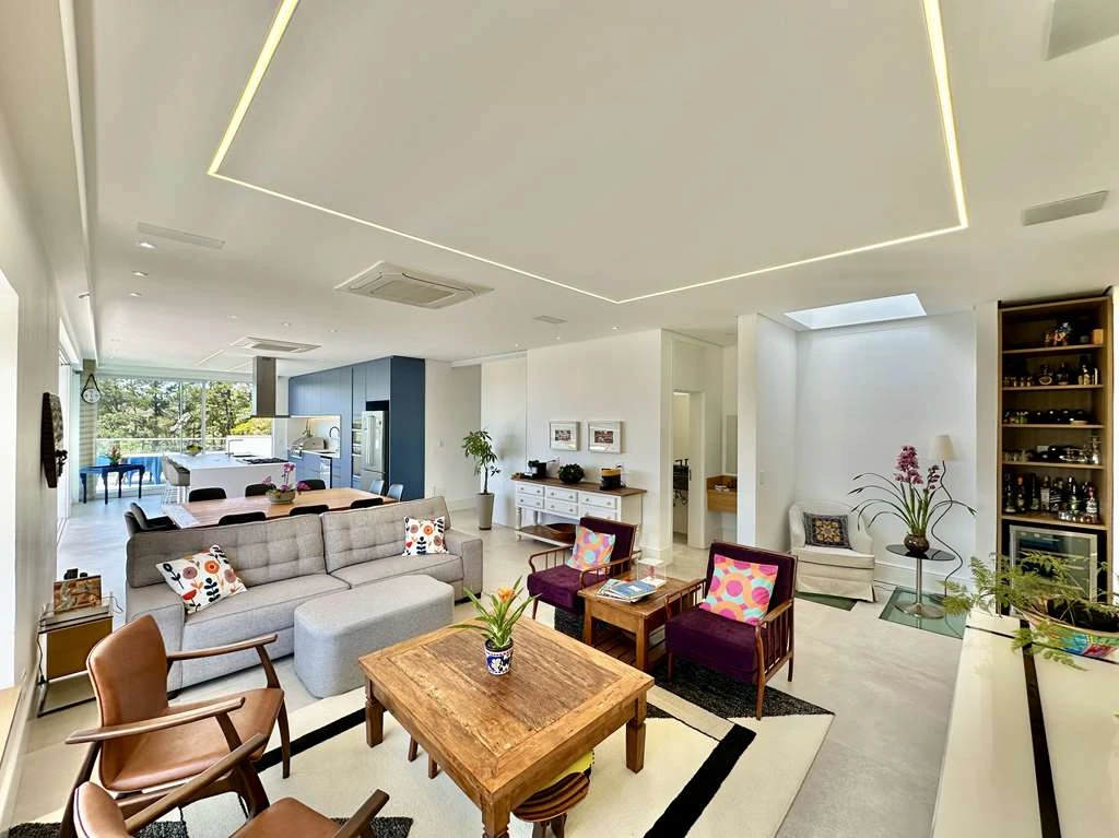 Living integrado (estar, jantar, lareira a gás, bar e TV)