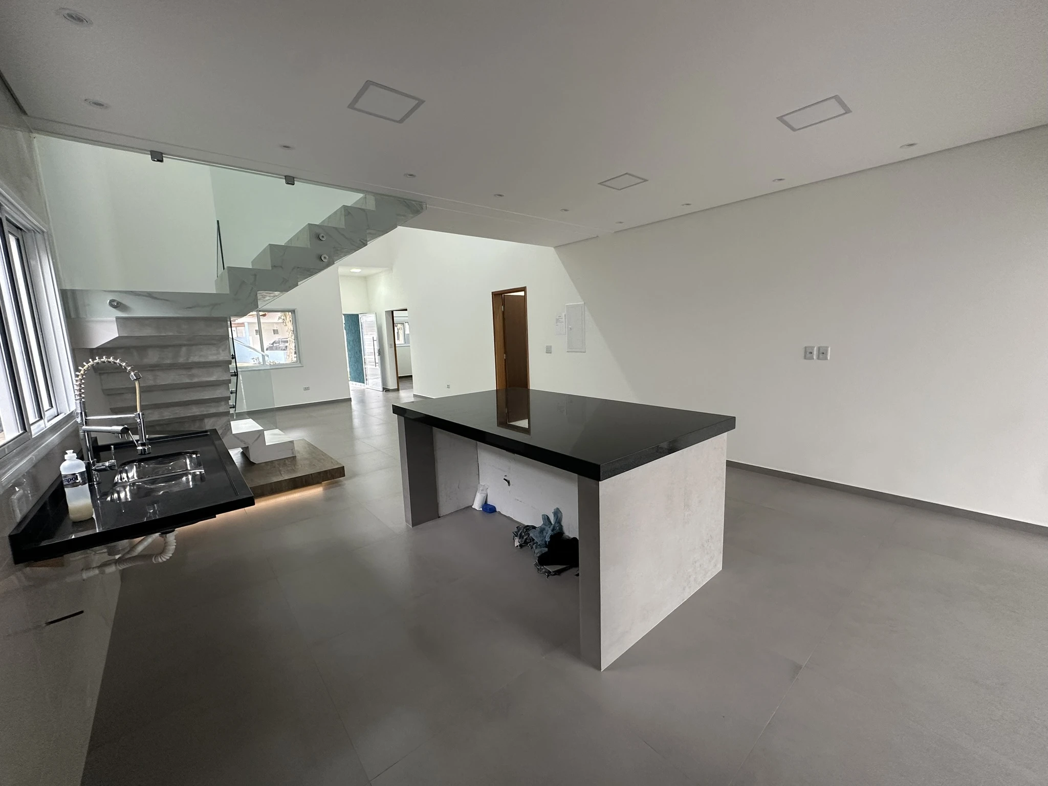 Cozinha moderna com ilha e integração à área gourmet