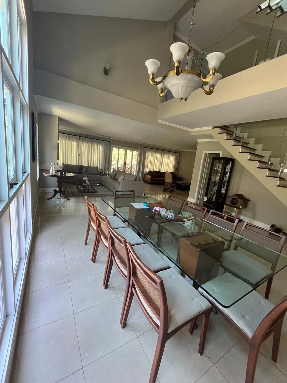 Sala de estar e jantar com pé-direito alto