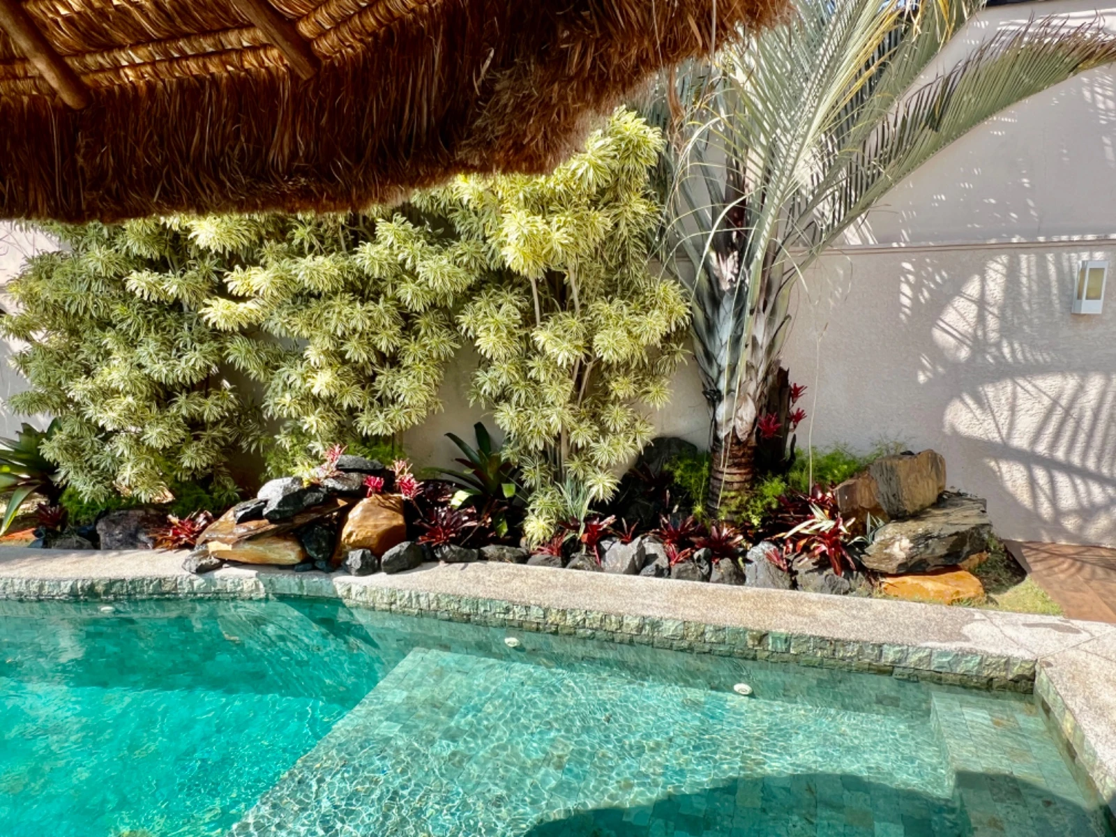 Piscina aquecida revestida com pedra Hijau original, estilo natural
