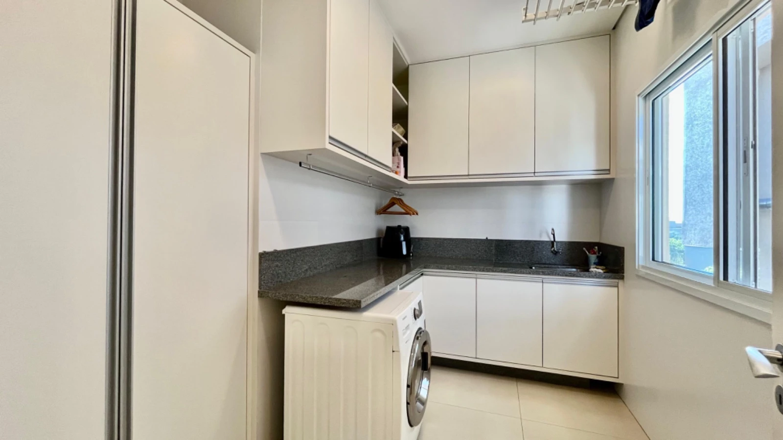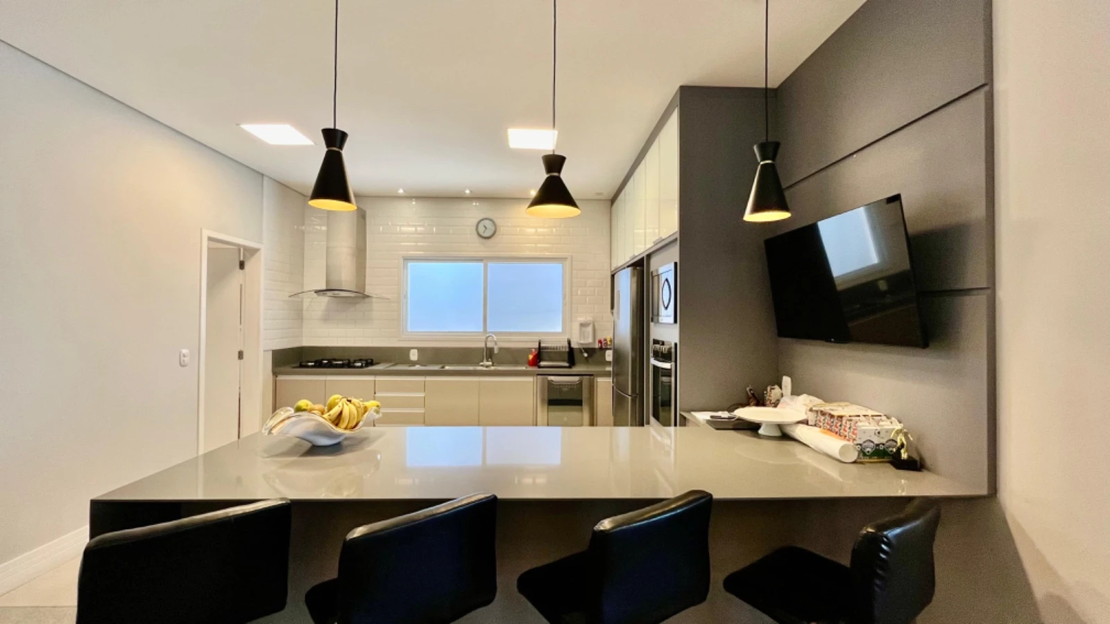 Piso inferior com suíte de hóspedes e área gourmet integrada