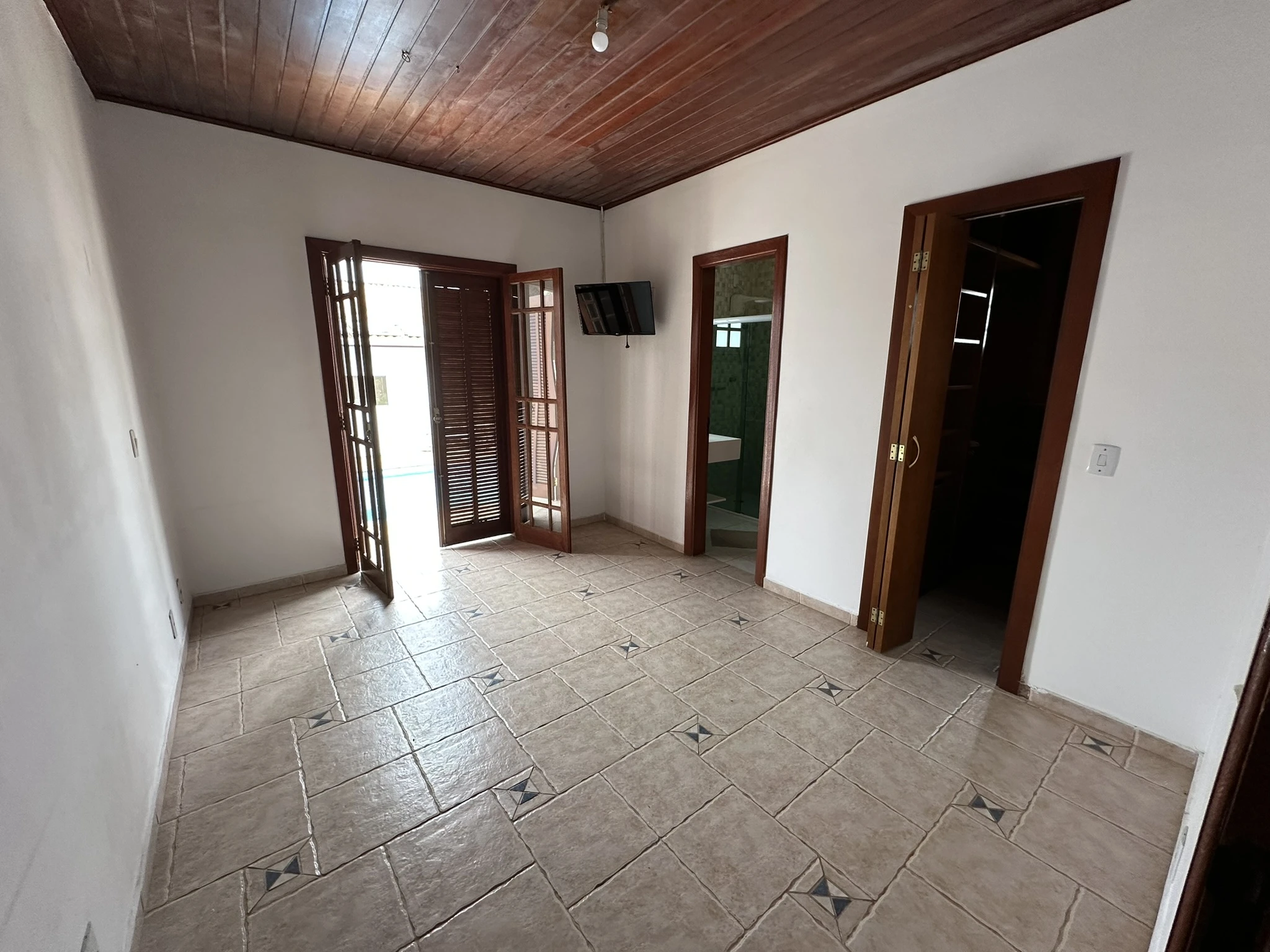 Sala de TV íntima conectando-se aos 3 dormitórios, sendo 1 suíte com closet