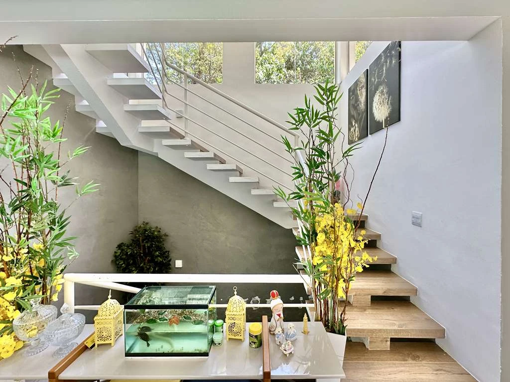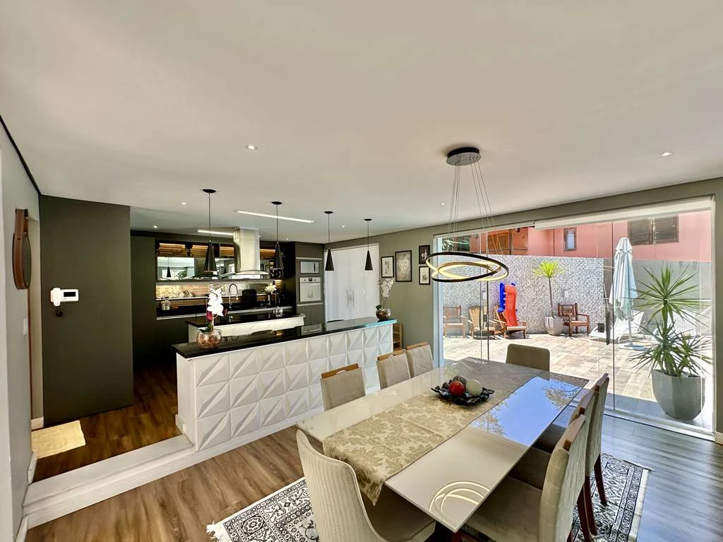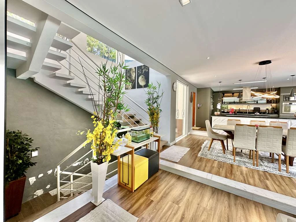 Casa envidraçada, arejada e ensolarada, com projeto de iluminação e gesso.