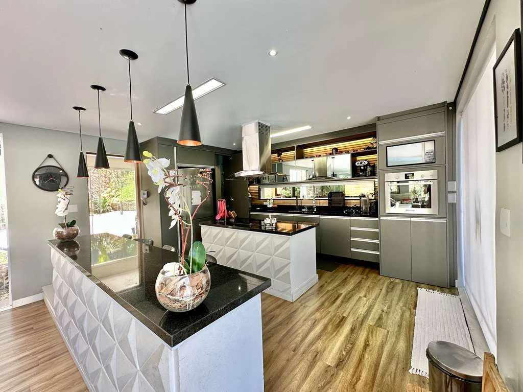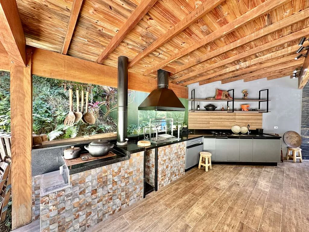 Fazendinha – Casa Contemporânea, 4 Dormitórios (3 Suítes), Gourmet Completa, Piscina Lareira e Salão para Hóspedes Ref.1338
