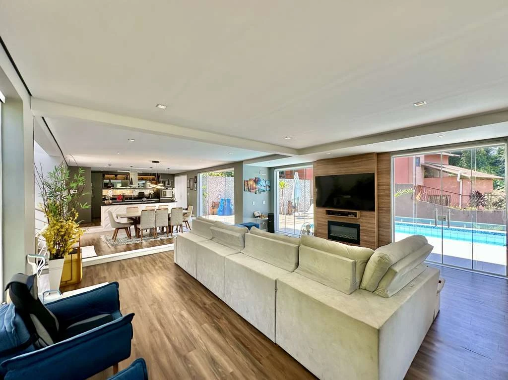 Living amplo para 6 ambientes, totalmente integrado ao lazer: