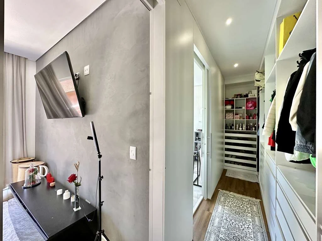 Hall íntimo com roupeiro.